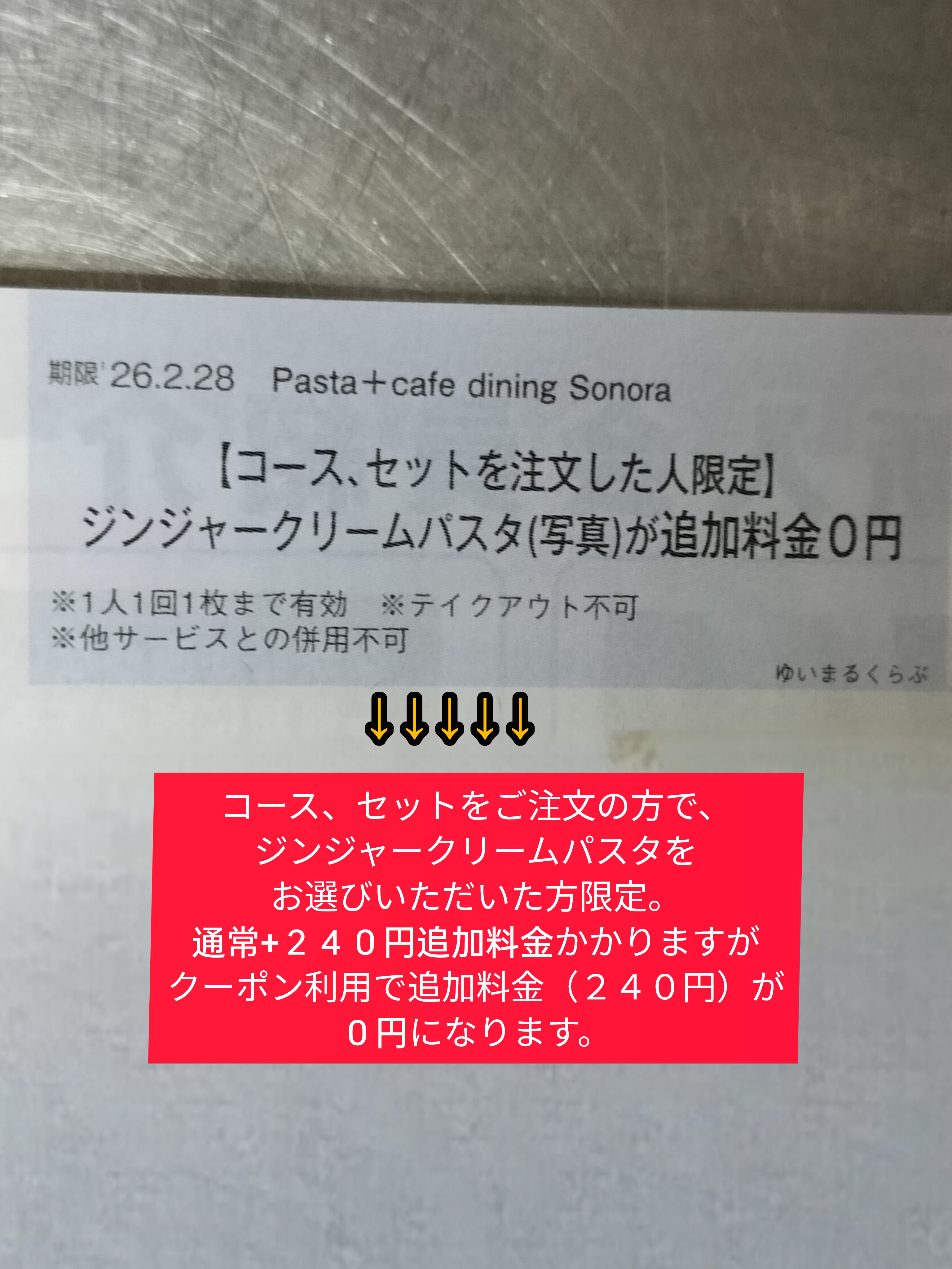 本クーポンはタダでジンジャークリームパスタが食べられるクーポンでは
