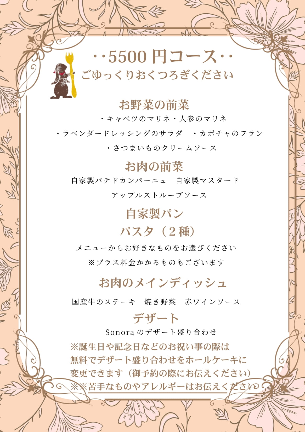 メニューは一例で季節ごとに変わります。ご予約は前日までに