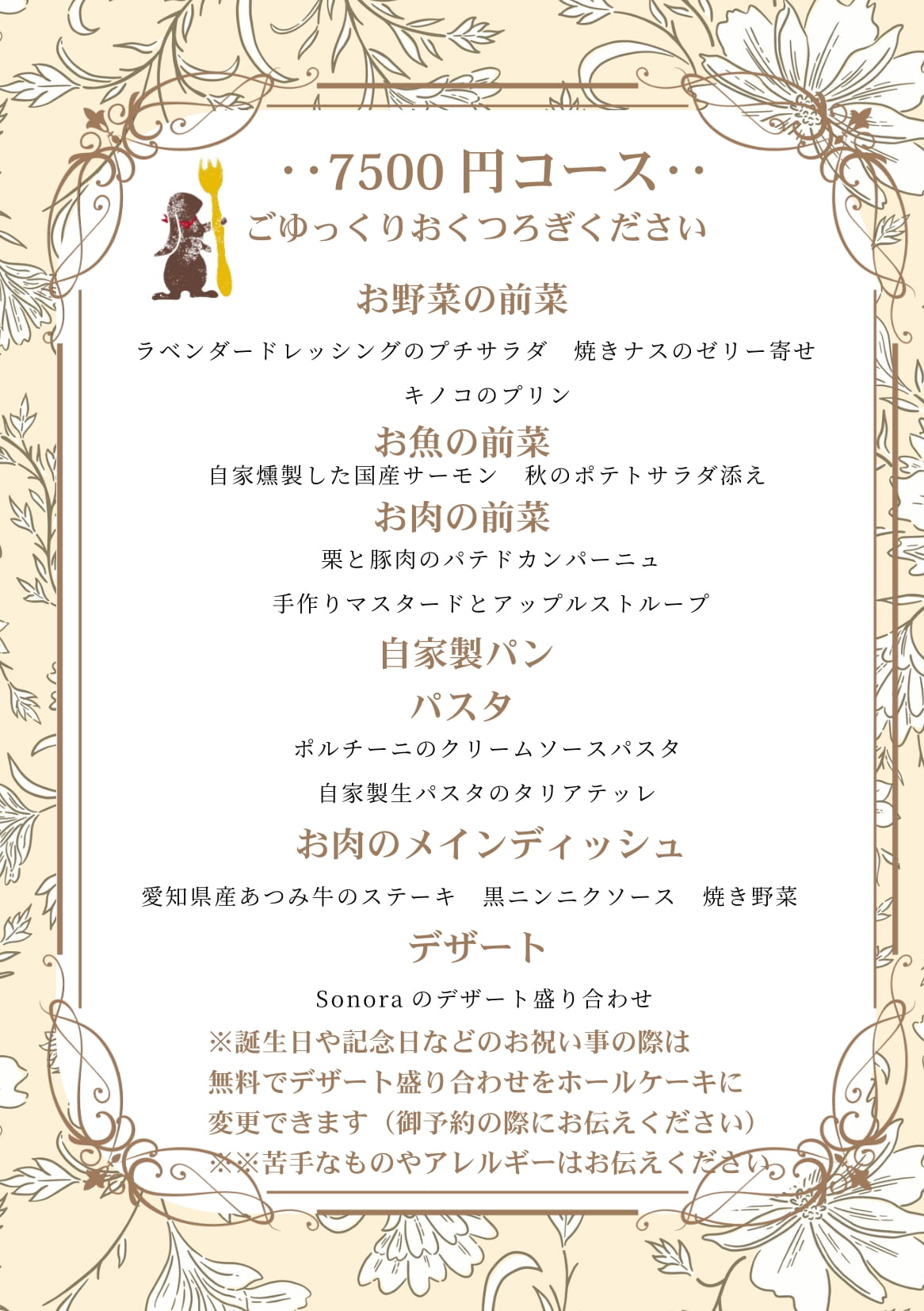お願いいたします(7500円コースは3日前、ホールケーキへの